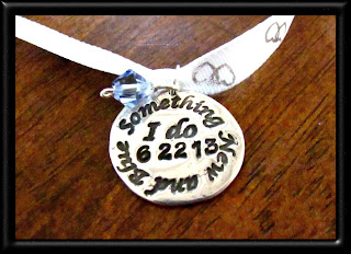 The reason I say it was mostly original was because I wanted to make the charm itself...had the design already ready with the date and the Swarovski crystal all added in my mind's eye...but I didn't know what to do with the charm. So I looked around online and saw suggestions of adding it with a bow to the bouquet for the wedding day, so it's not flashy or obvious, but it's still 'with' the bride. Then, when she transfers it to a chain after the wedding day, she can always have a reminder of such a great moment in her life.